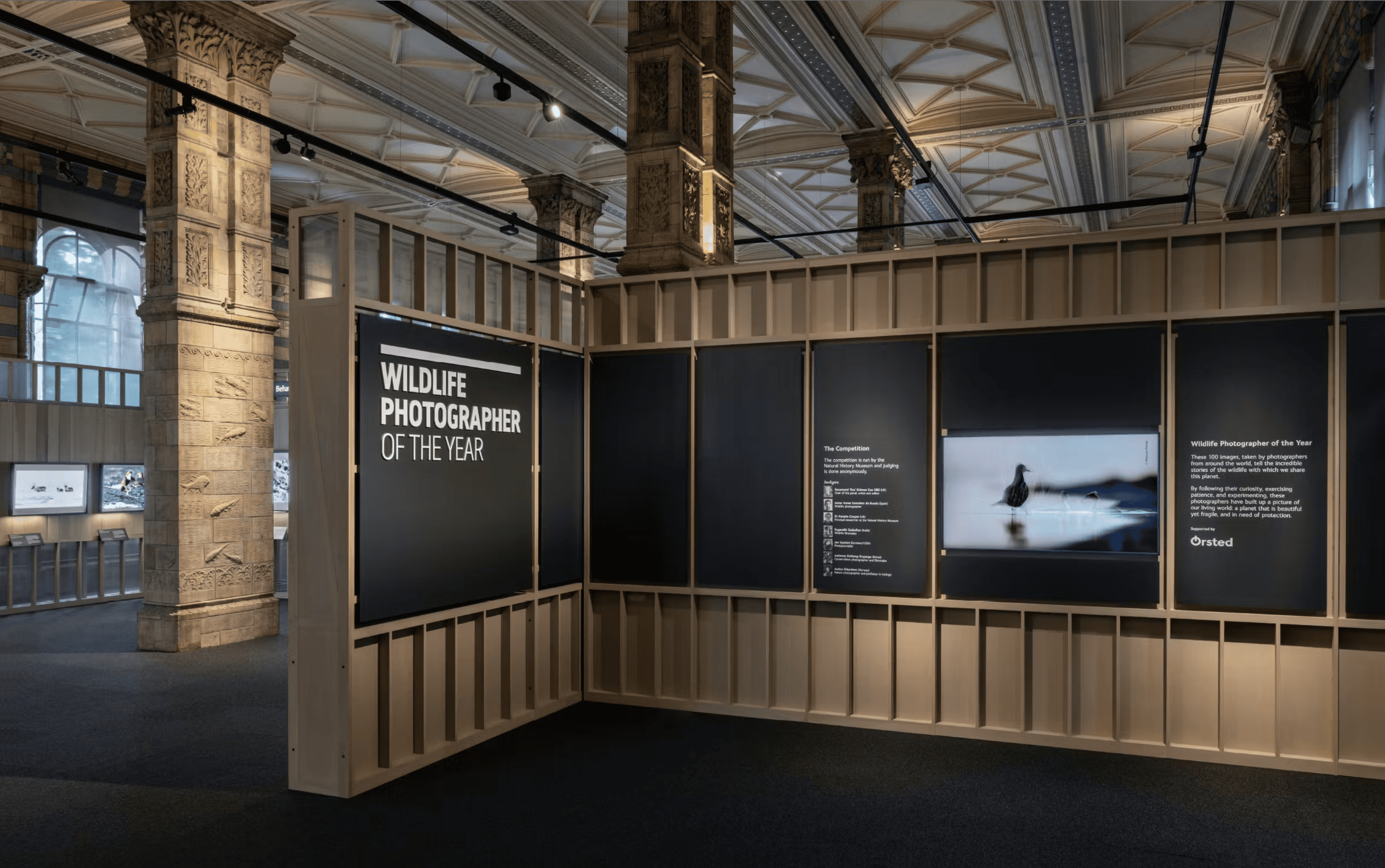 A multi-year collaboration with the Natural History Museum, supporting one of the world's most recognised photography exhibitions. A relationship that began with bespoke frame design has grown year on year into full production responsibility for both the main exhibition and its international touring program.